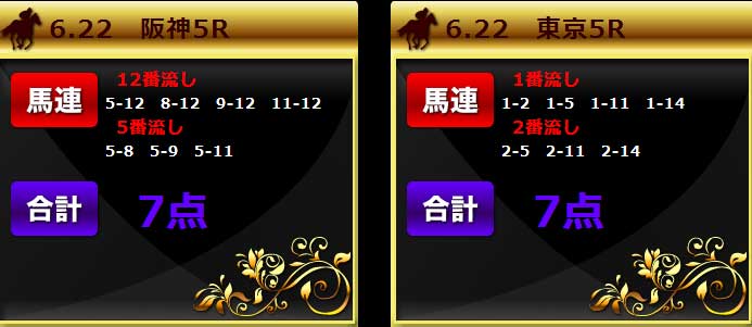 買い目は土日の前日に公開しており、主に馬連7点の買い目となっています。