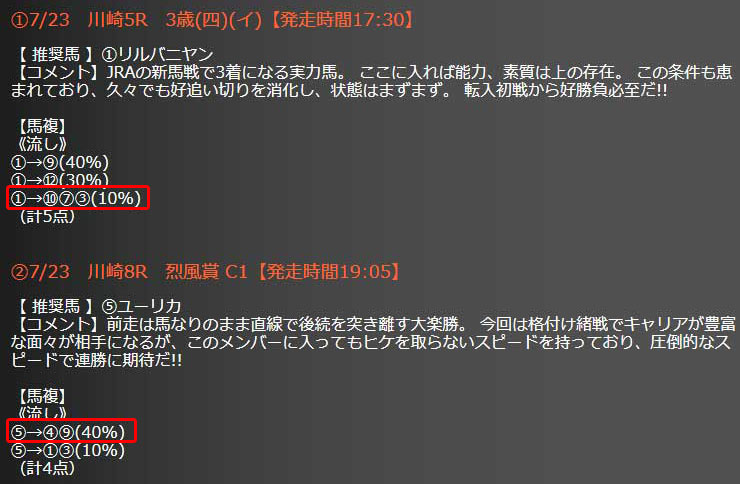 ちなみに、先月の7/23(金)に開催されていた川崎競馬での無料情報が的中していました。
